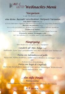 Freuen Sie sich auf eine gemeinsame Zeit mit Familie, Kollegen/Kolleginnen oder Freunden und genießen in stimmungsvoller, weihnachtlicher Atmosphäre unser ausgewähltes Weihnachts-Menü.